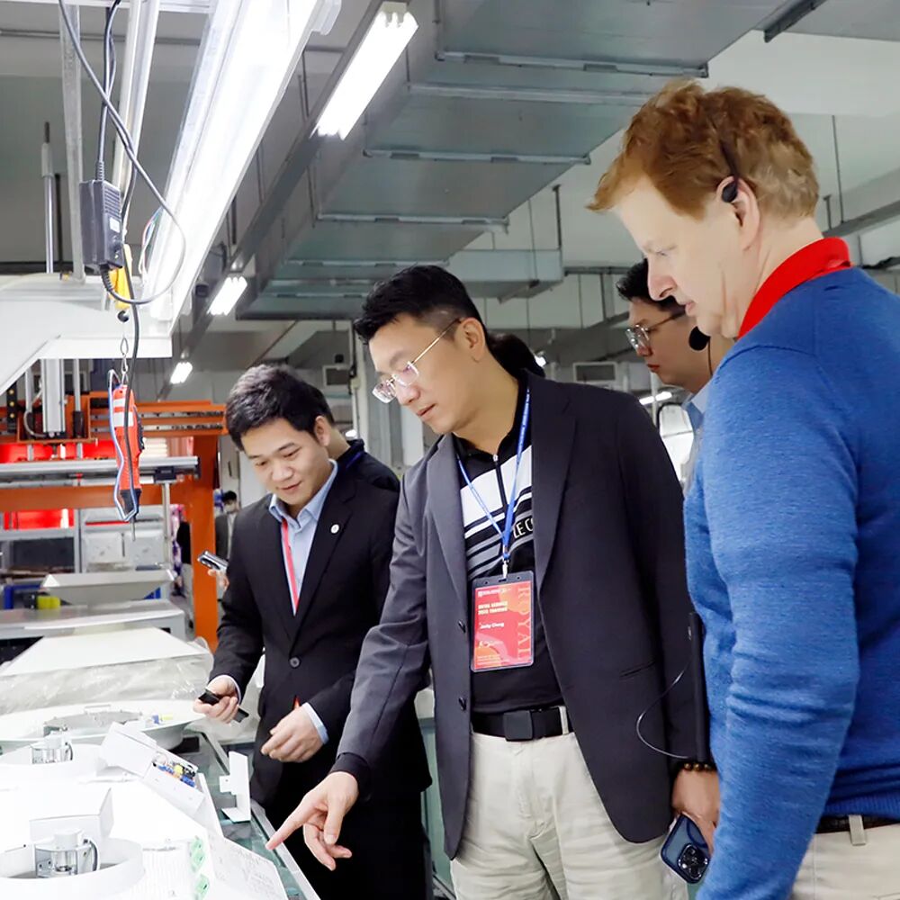 除了课堂讲解,培训还安排了工厂及产品演示室参观环节,近距离观摩产品的制造工艺与生产流程,并现场体验皇家变风量系统的舒适度。正是这些看得见、摸得着的细节,让合作伙伴们真切感受到皇家在产品技术与品质把控上的长期坚持与严谨态度。